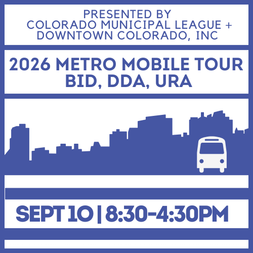 Why sit in a conference room when you can hit the road and explore real-world examples? The Colorado Municipal League (CML) and Downtown Colorado, Inc. (DCI) are excited to present the sixth annual Metro Mobile Tour, happening on Thursday, September 10, 2026.This interactive, on-the-ground experience will highlight how these tools operate, collaborate, and plan for the future.